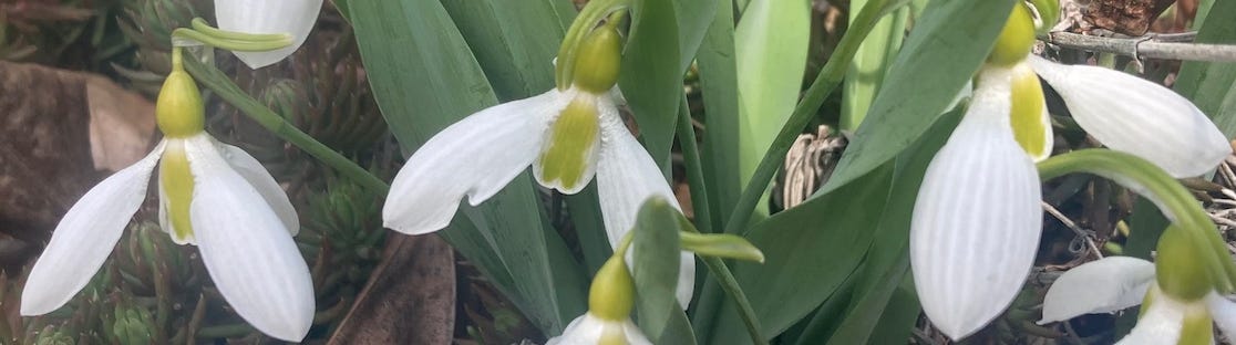 Scheduling and getting to my first mammogram took six weeks. The clinic was experiencing post-pandemic backlogs. I was heading out of country for a week to work at the end of January. Life carried on, busy and stressful, moving fast. Inside me this foreign mass was daily gaining in size and heft, unignorable, troubling, alien. The day I walked out the door to drive to my appointment, there were the snowdrops. Sign and symbol, omen and portent.